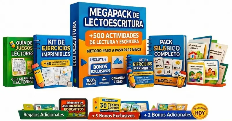 El Mega Kit de Lectoescritura lo guía paso a paso hasta la fluidez, combinando ejercicios progresivos y juegos educativos